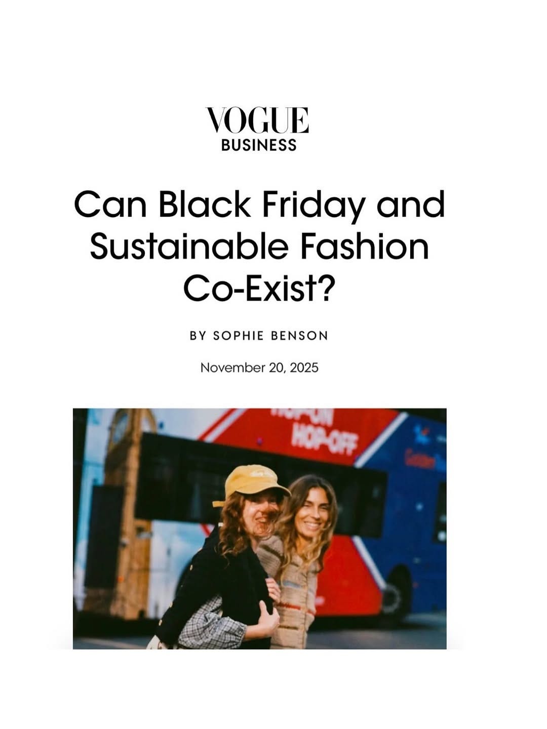 Sophie Benson’s article for Vogue Business, in which she unites the seemingly juxtaposed worlds of Black Friday and sustainable fashion.